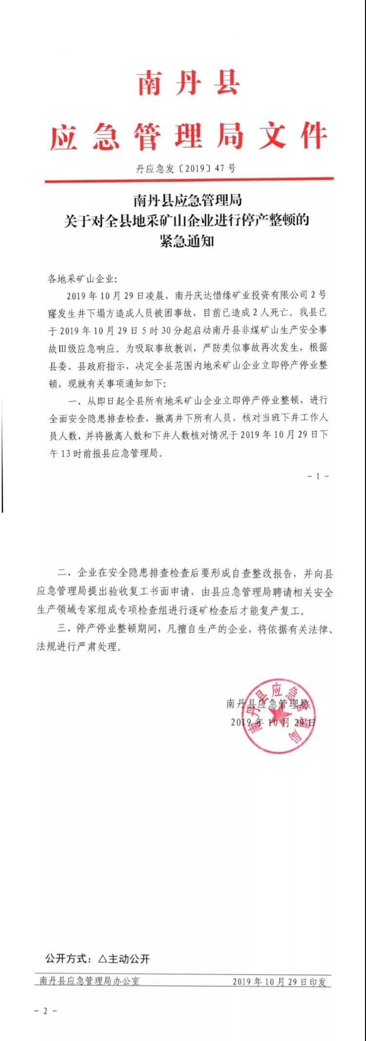 10月28日,广西南丹县庆达惜缘矿业投资有限公司所属矿山发生冒顶事故,导致2人遇难、11人失联。