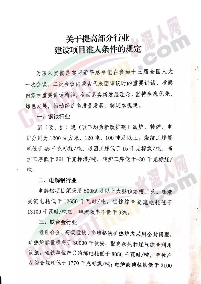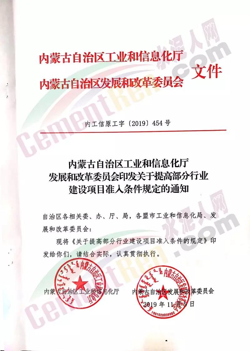 日前,水泥人网自内蒙古自治区工信及获悉,本月初自治工信厅联合发改委联合下发《关于提高部分行业建设项目准入条件规定的通知》。
