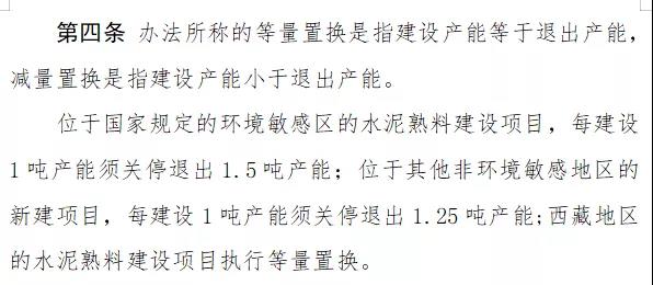 水泥人网小编注意到,于2018年1月1日开始实施的《办法》中明确减量置换是指建设产能小于退出产能。位于国家规定的环境敏感区的水泥熟料建设项目,每建设1吨产能须关停退出1.5吨产能;位于其他非环境敏感地区的新建项目,每建设1吨产能须关停退出1.25吨产能;西藏地区的水泥熟料建设项目执行等量置换。