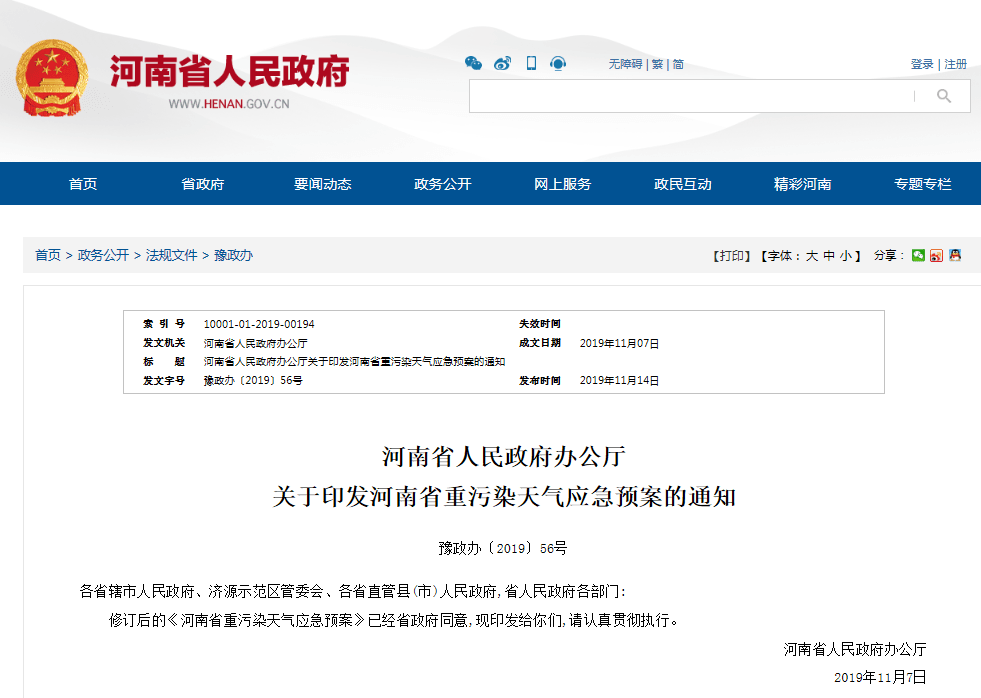 河南省重污染天气应急预案