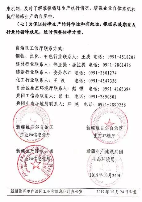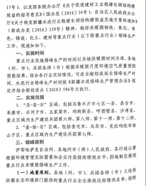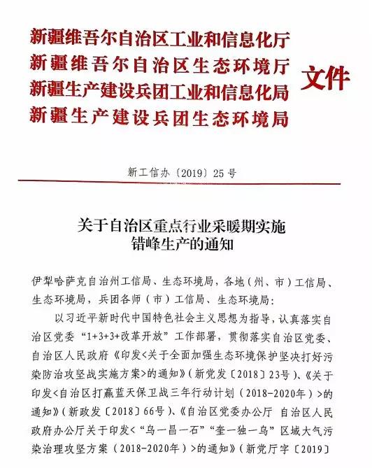 通知还要求,自治区境内所有水泥企业继续严格执行自治区和兵团工信、生态环境四部门联合下发的《新疆水泥错峰生产管理办法》(新经信办(2016)524号),电石渣水泥熟料企业应当按要求错峰生产或者降低生产负荷,确实不能按照通知执行错峰生产停窑的电石渣水泥企业,应制定并执行电石渣水泥错峰生产置换方案,电石查水泥企业生产的合格水泥熟料由区域内传统水泥企业统筹消化处理,实现污染物减排与化解过剩产能。
