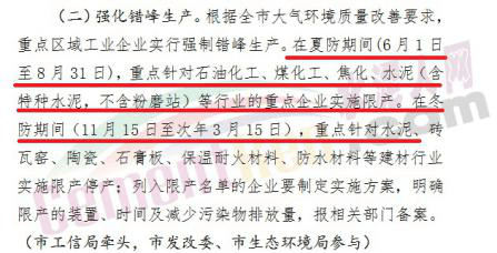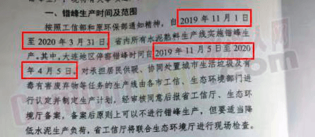 采暖季错峰生产分为两阶段2019年1月到3月15日24时,时间75天,11月15日至12月,时间45天。