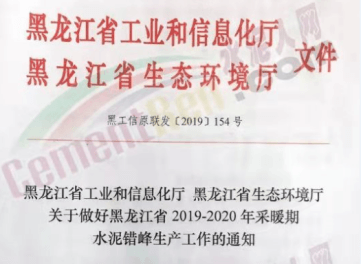 2019年黑龙江省水泥企业错峰停产天数为180天,采暖期错峰停产时间分两个阶段1月4月20日,时间110天,10月20日至12月,时间70天