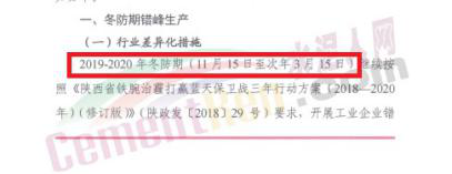 陕西省水泥企业错峰停限产天数183天