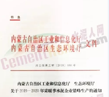 2019年内蒙古自治区水泥企业错峰停产时间为天120天,采暖季错峰时间分两阶段1月至3月15日,时间75天,11月15至12月,时间45天。