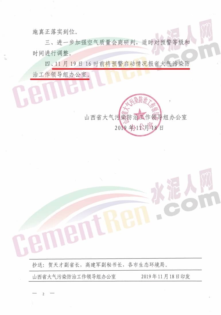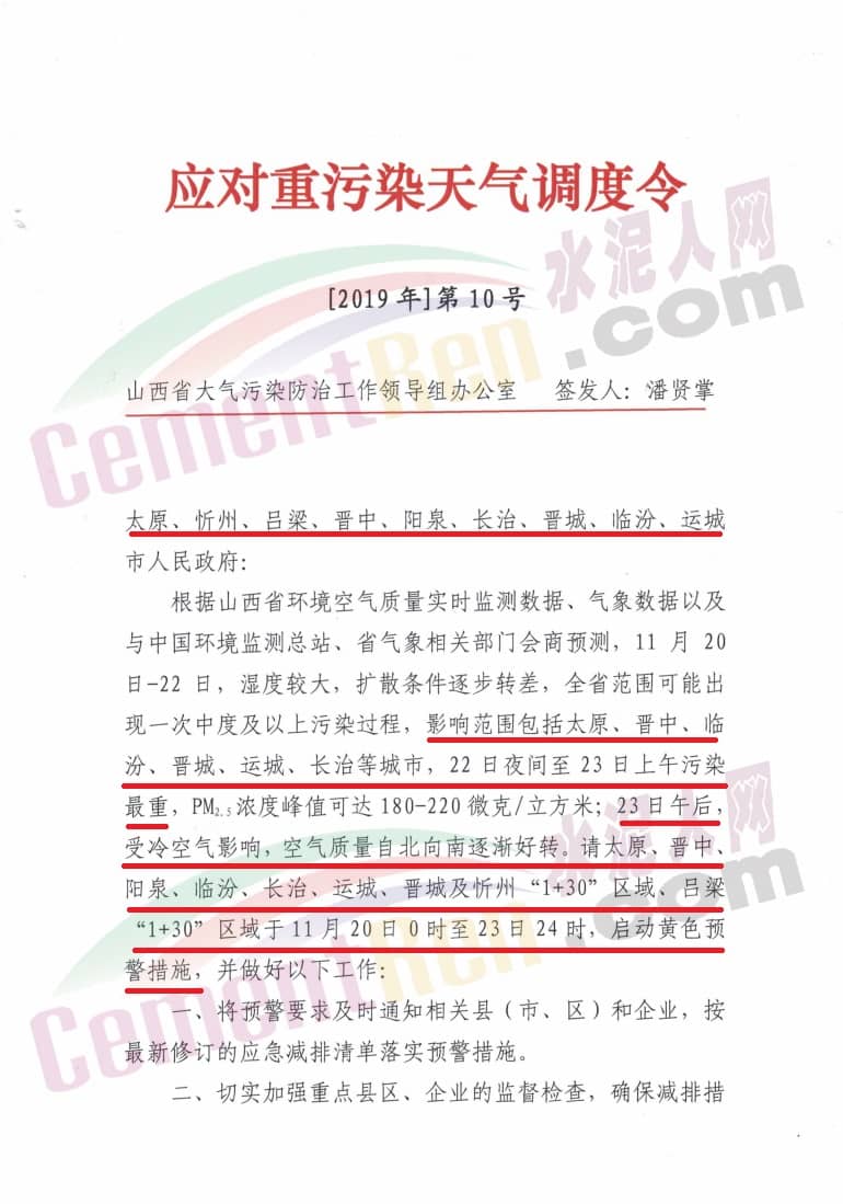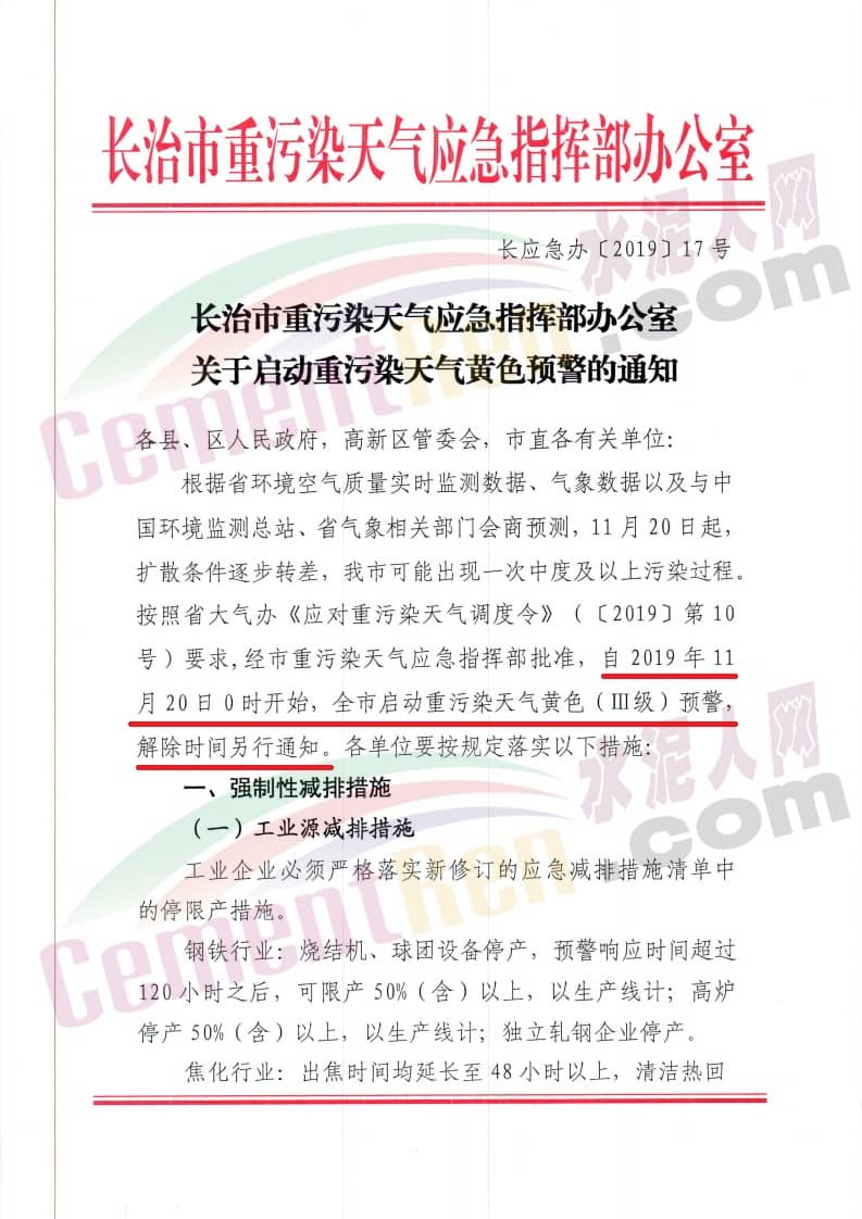 水泥人网消息:日前,山西省长治市、太原、忻州、晋中、阳泉、晋城、临汾运城,河南省南阳、三门峡,河北省唐山市相继发布了重污染天气橙色预警(二级)响应通知。