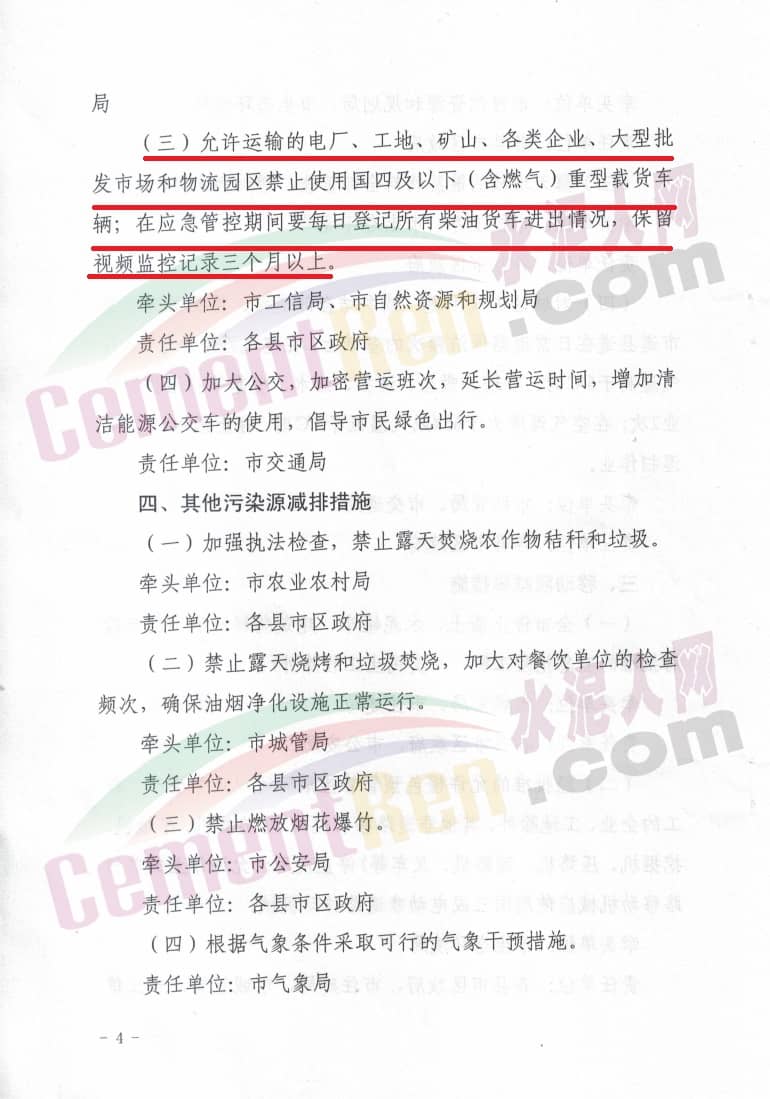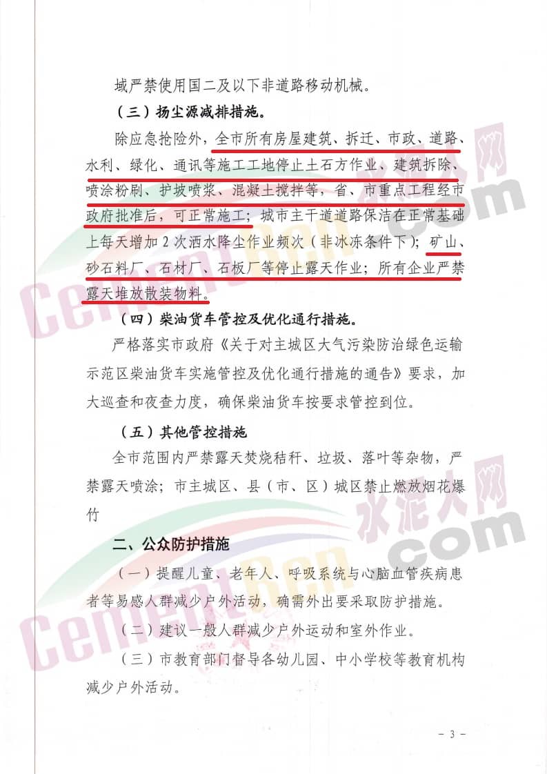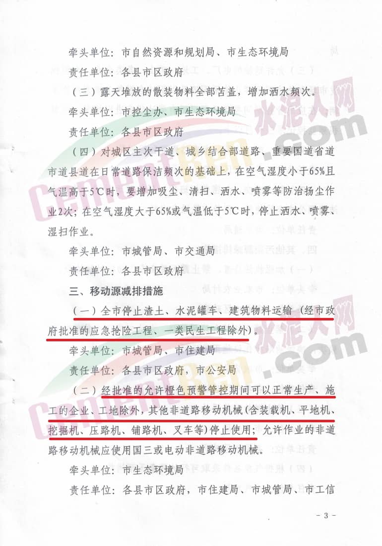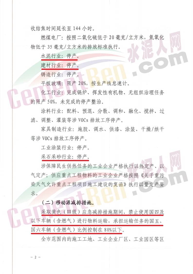 工业企业必须严格落实新修订的应急减排措施清单中停限产措施,建材行业全部停产(包括水泥行业、采石采砂行业等),涉保障民生供热任务的工业企业严格执行以热定产、以气定产;供应重点工程物流的工业企业严格按照《关于重污染天气允许重点工程项目施工建设的复函》执行以量定产要求。
