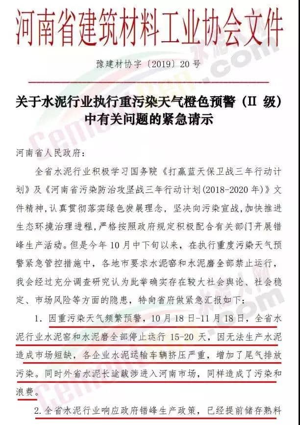 就在河南地区水泥价格十天十连涨的同时,济南、淄博 、枣庄、东营、维坊、济宁、泰安、日照、临沂、德州、聊城、滨州、菏泽,太原、晋中、阳泉、临汾、长治、运城、晋城及忻州“1+30”区域、吕梁、洛阳、安阳、鹤壁、新乡、焦作、郑州、开封、平顶山、濮阳、许昌、漯河、三门峡、商丘、周口、驻马店、南阳、济源12个省辖市。石家庄、保定、衡水、邢台、邯郸、定州、辛集、雄安新区)、区域二(唐山、廊坊、沧州、秦皇岛)再加上陕西区域8个城市及天津市和四川省乐山市一共61个城市同时发布了重污染天气预警,水泥紧缺进一步加剧。