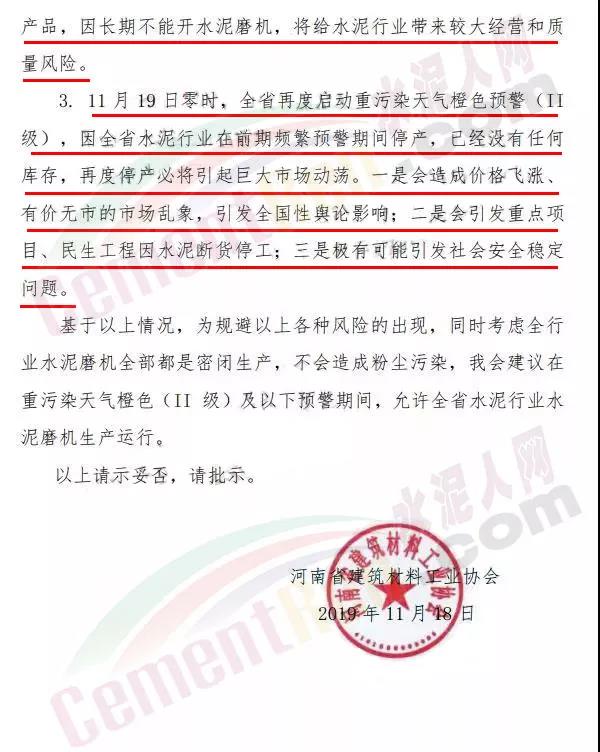 以许昌市为例,当地污染防治攻坚战领导小组通知 自11月19日0时启动重污染天气橙色,实施II级应急响应措施。停产类企业包括水泥熟料企业(经批准协同处置,危废、污泥等涉及民生的熟料生产线11月19日0时停产到位)、水泥粉磨企业、矿渣微粉企业、水泥制品企业,商砼企业等。