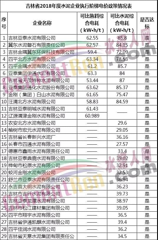 附吉林省2018年度水泥企业执行阶梯电价政策情况表: