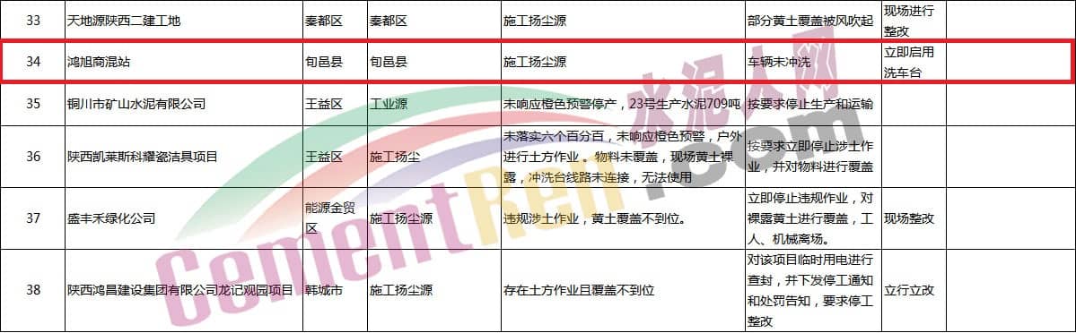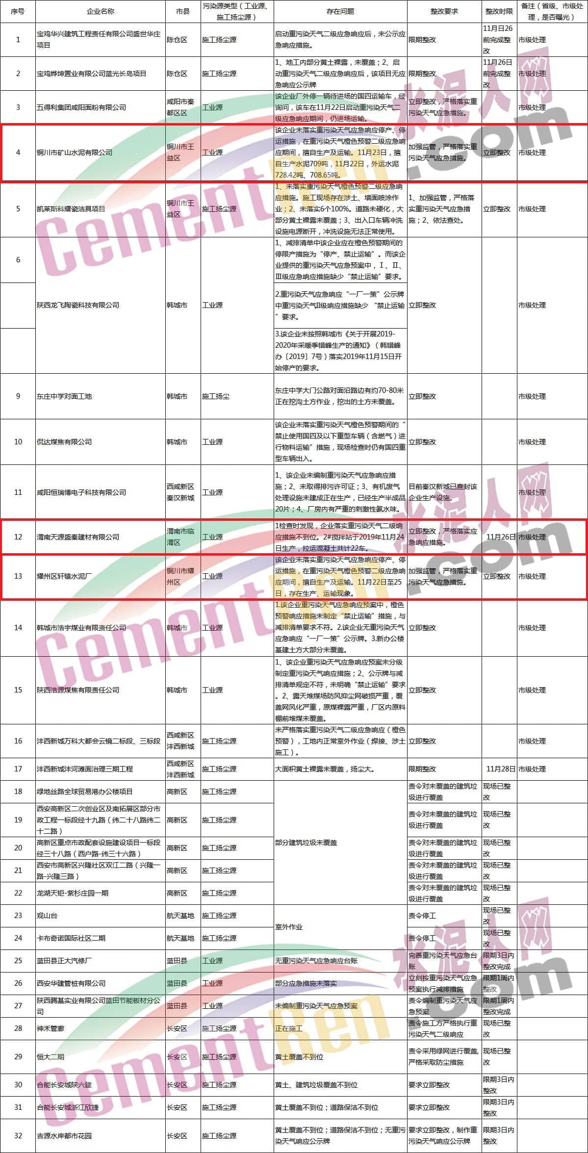 日前,水泥人网自陕西省生态环境厅获悉,按照陕西省重污染天气应急指挥部办公室《关于提示应对重污染天气的函》要求,陕西省生态环境执法总队及各市区执法部门对重污染天气应急响应措施执行情况进行了专项执法检查,相关检查问题汇总如下: