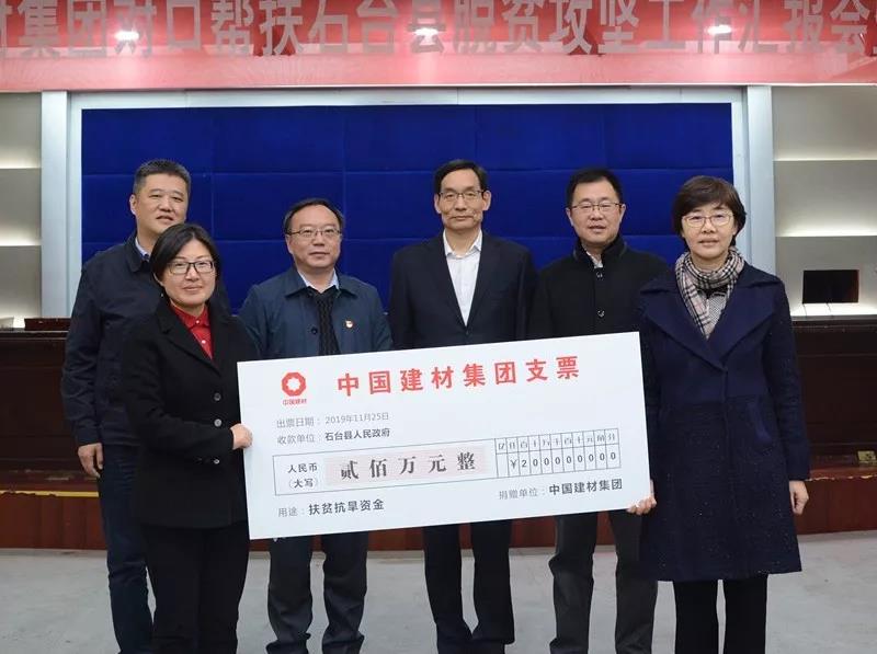 在与池州市领导的座谈中,周育先指出,脱贫攻坚战作为党的十九大提出的三大攻坚战之一,扎实做好这项工作意义重大、影响深远。当前,脱贫攻坚已到了决战决胜、全面收官的关键阶段。中国建材集团将深入贯彻党中央、国资委党委部署要求,充分发挥人才、资源和资金优势,不断加大帮扶力度,毫不松懈落实各项帮扶举措,着力巩固拓展脱贫攻坚成果,助力包括石台县在内的五个定点帮扶县区实现脱贫攻坚。双方还共同商讨了推动扶贫工作落地落实的具体要求和举措。