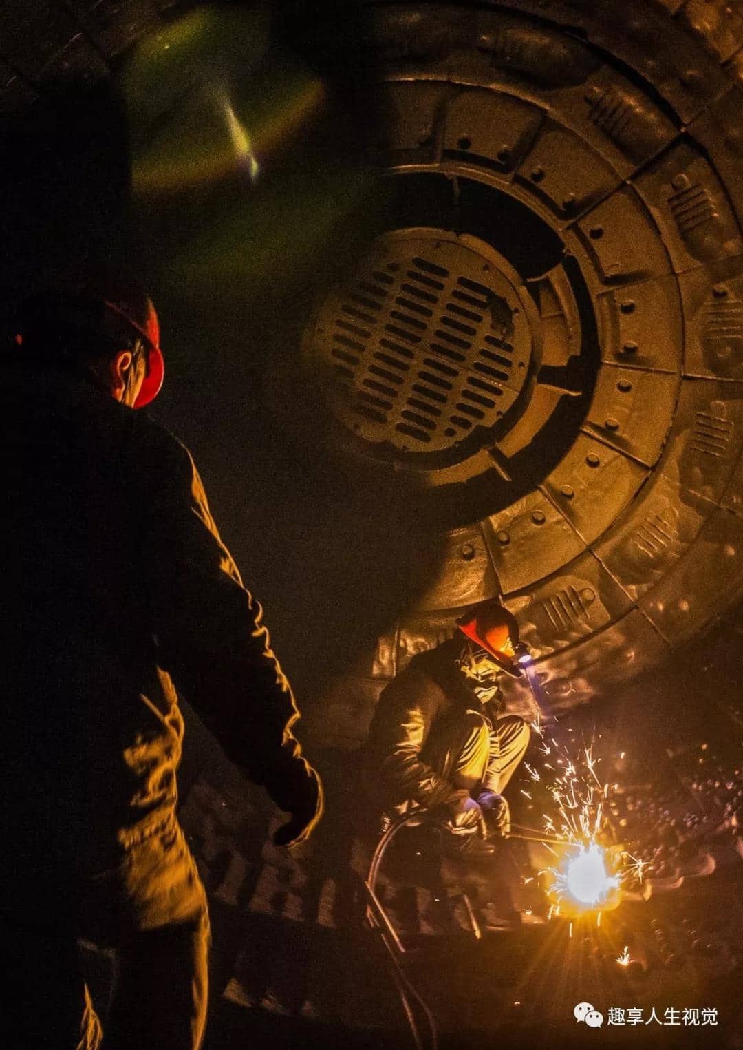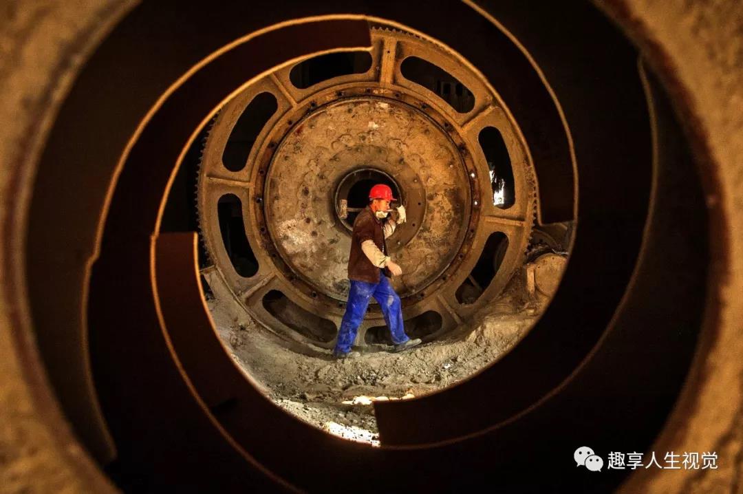 2019年2月15日常德南方水泥,电焊工黄建成在规格为3.8mx8.75m的风扫煤磨球磨机内切割。