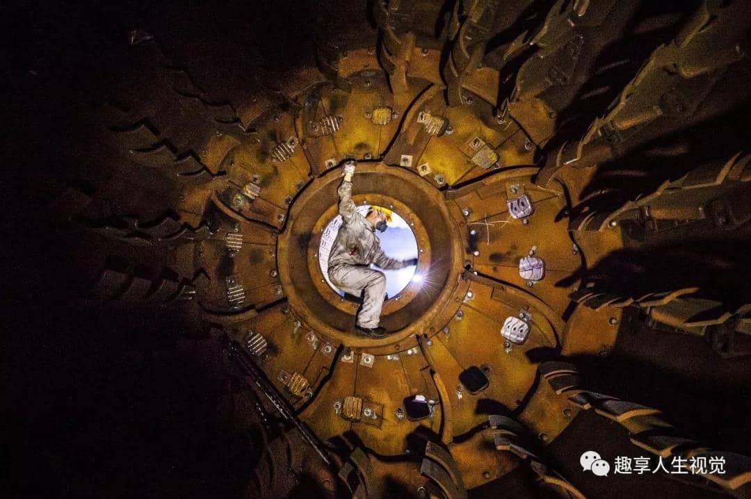 2019年3月4日常德南方水泥,电器维修工曹智从煤磨爬进风洞口。