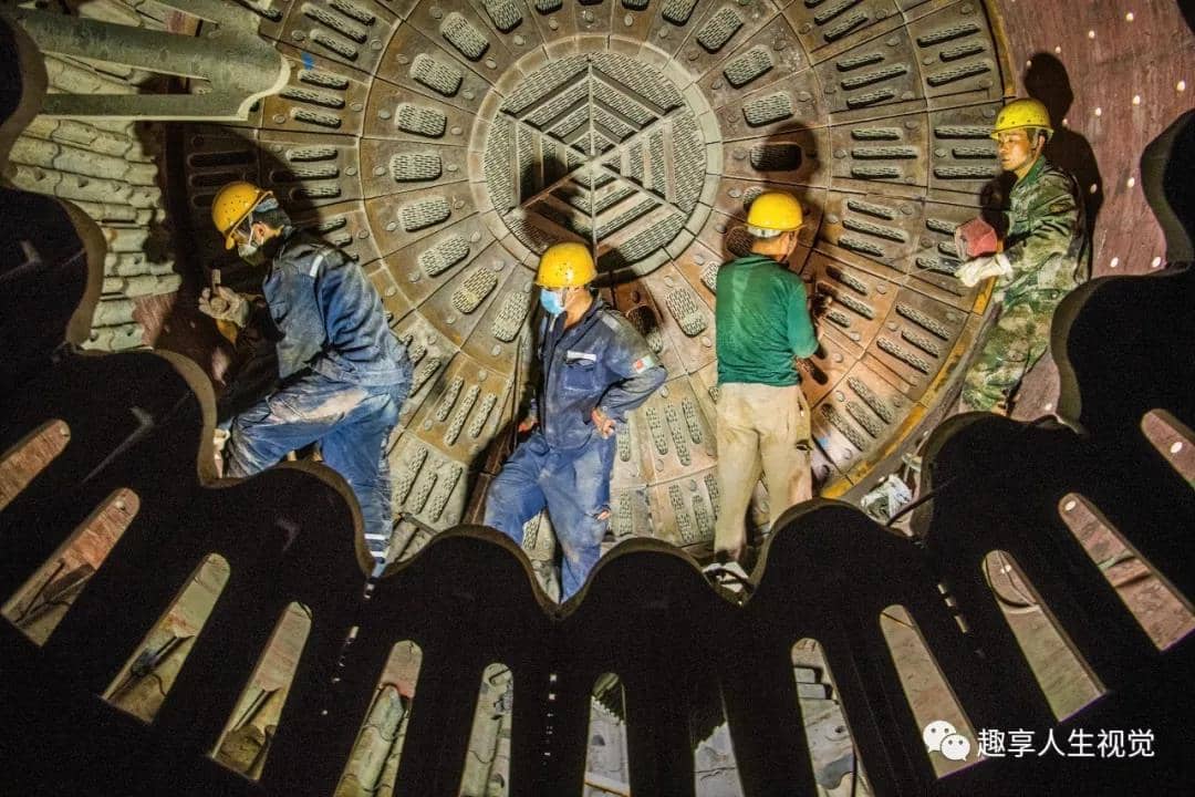2019年7月15日常德南方水泥,山东同得利窑炉有限公司的维修师傅在水泥磨机内检修。