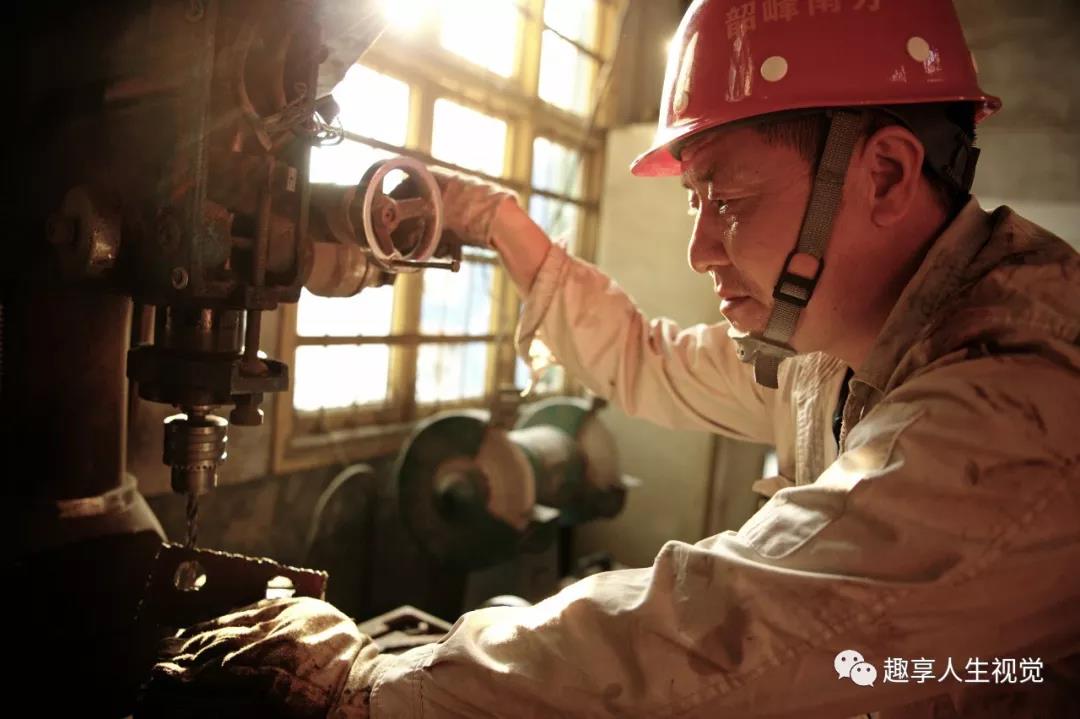 2019年8月15日韶峰南方水泥,机修工万申根在加工磨机部件的易损零配件。