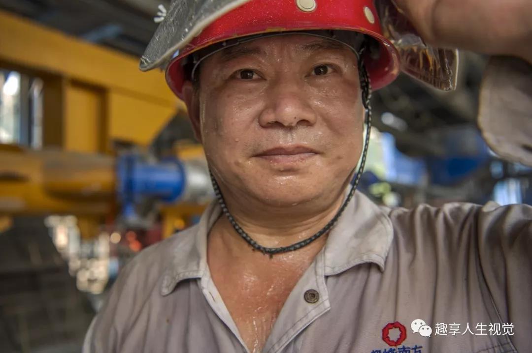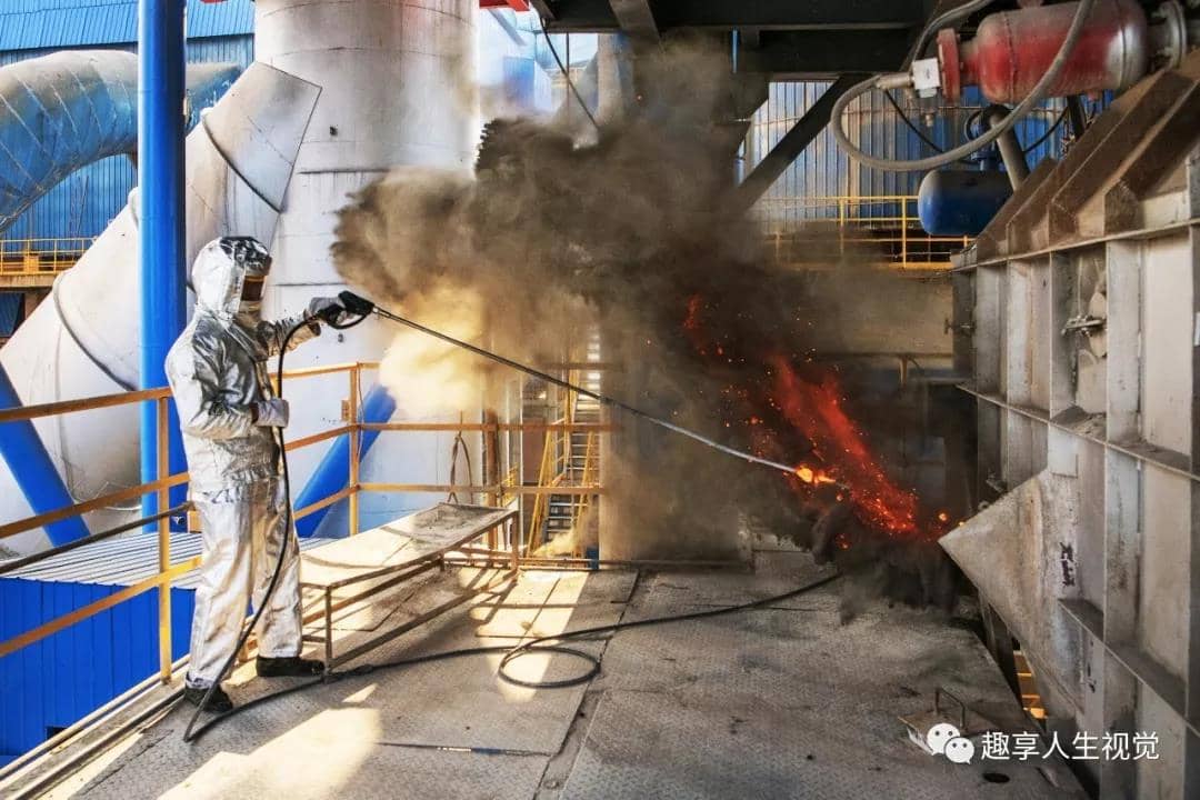 2019年8月23日常德南方水泥,预热巡检工姜业华在2000度高温回转窑的窑头检测窑温。