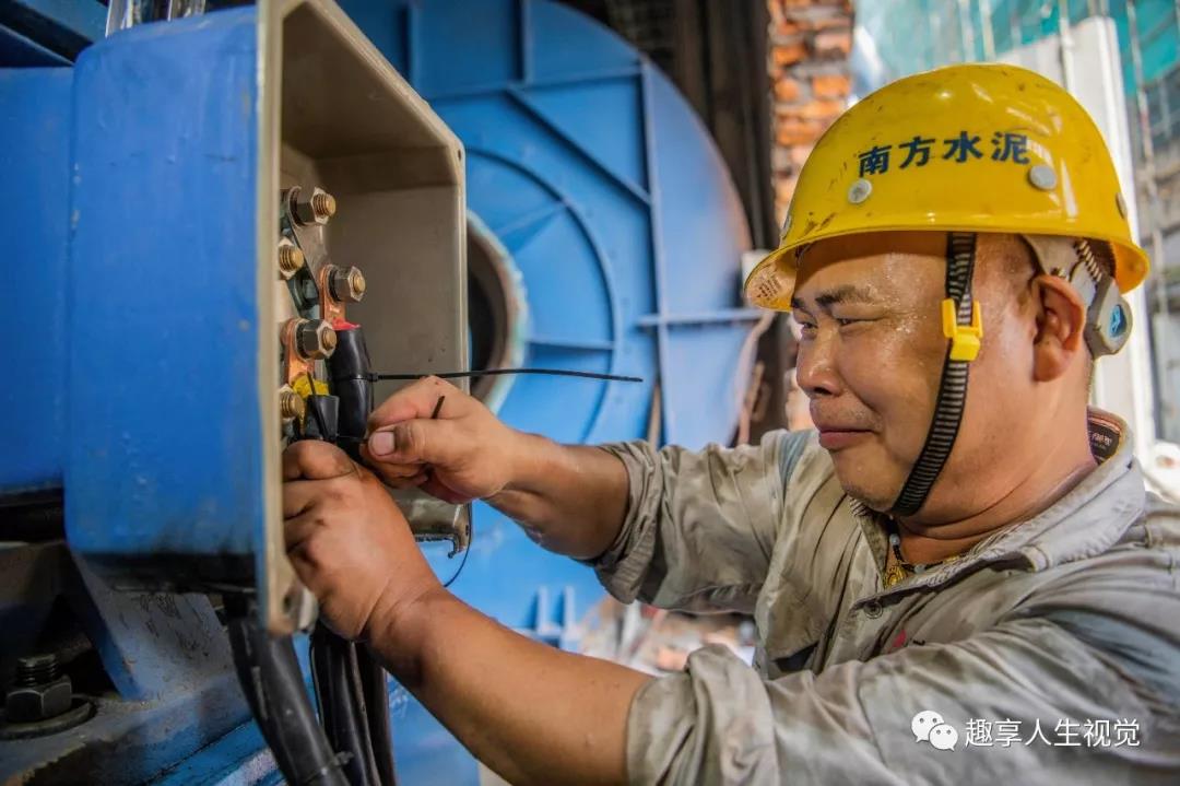 2019年7月16日常德南方水泥,电工杨勇在为检修完毕的燃煤球磨机接通电源。
