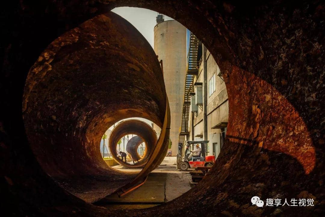 2019年8月25日常德南方水泥,工段长郭学松在拆卸的旧烟管里切割可利用部件。