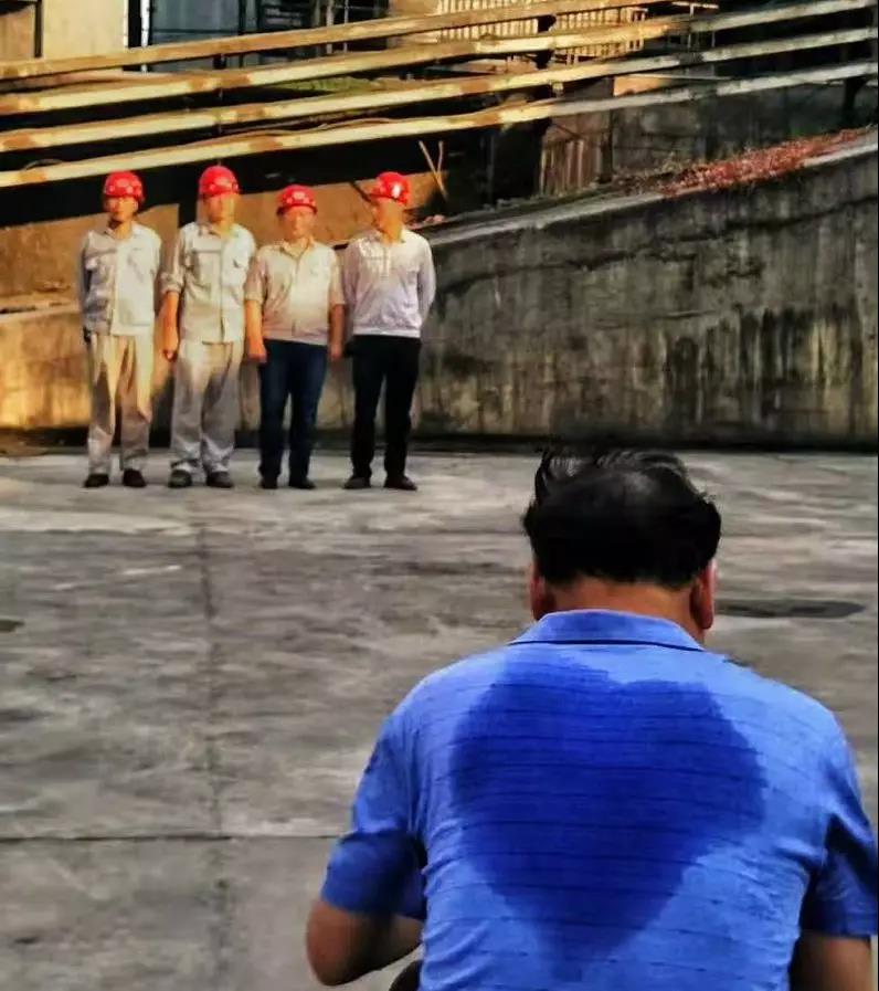 2019年7月15日常德南方水泥,外协窑炉维修工晏胜利与磨机外的工人沟通。