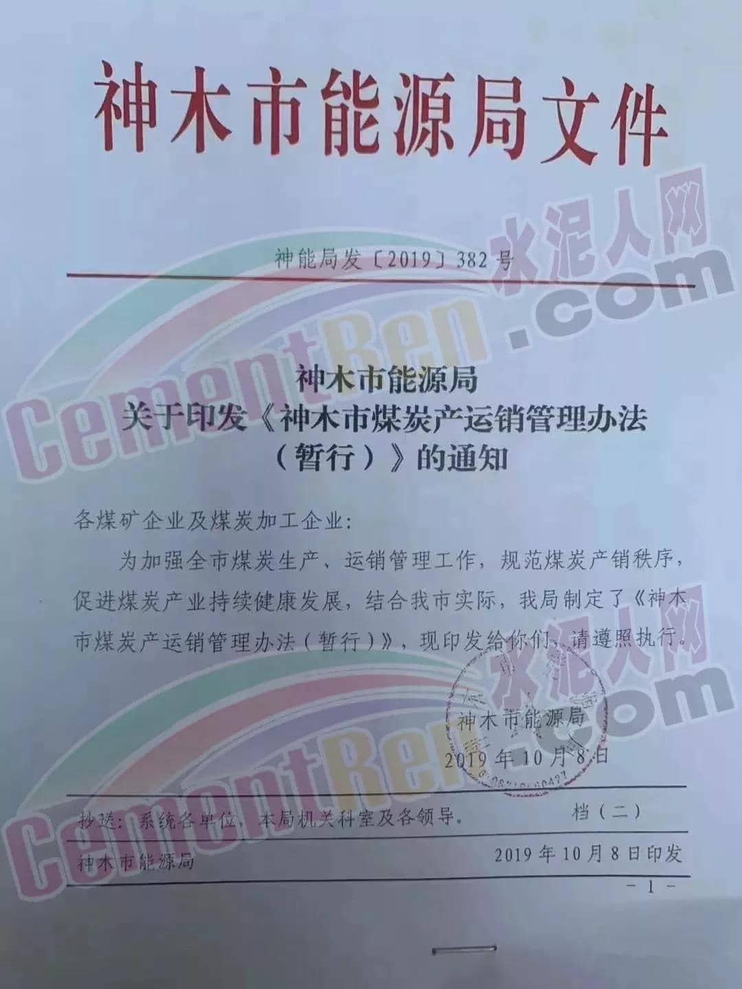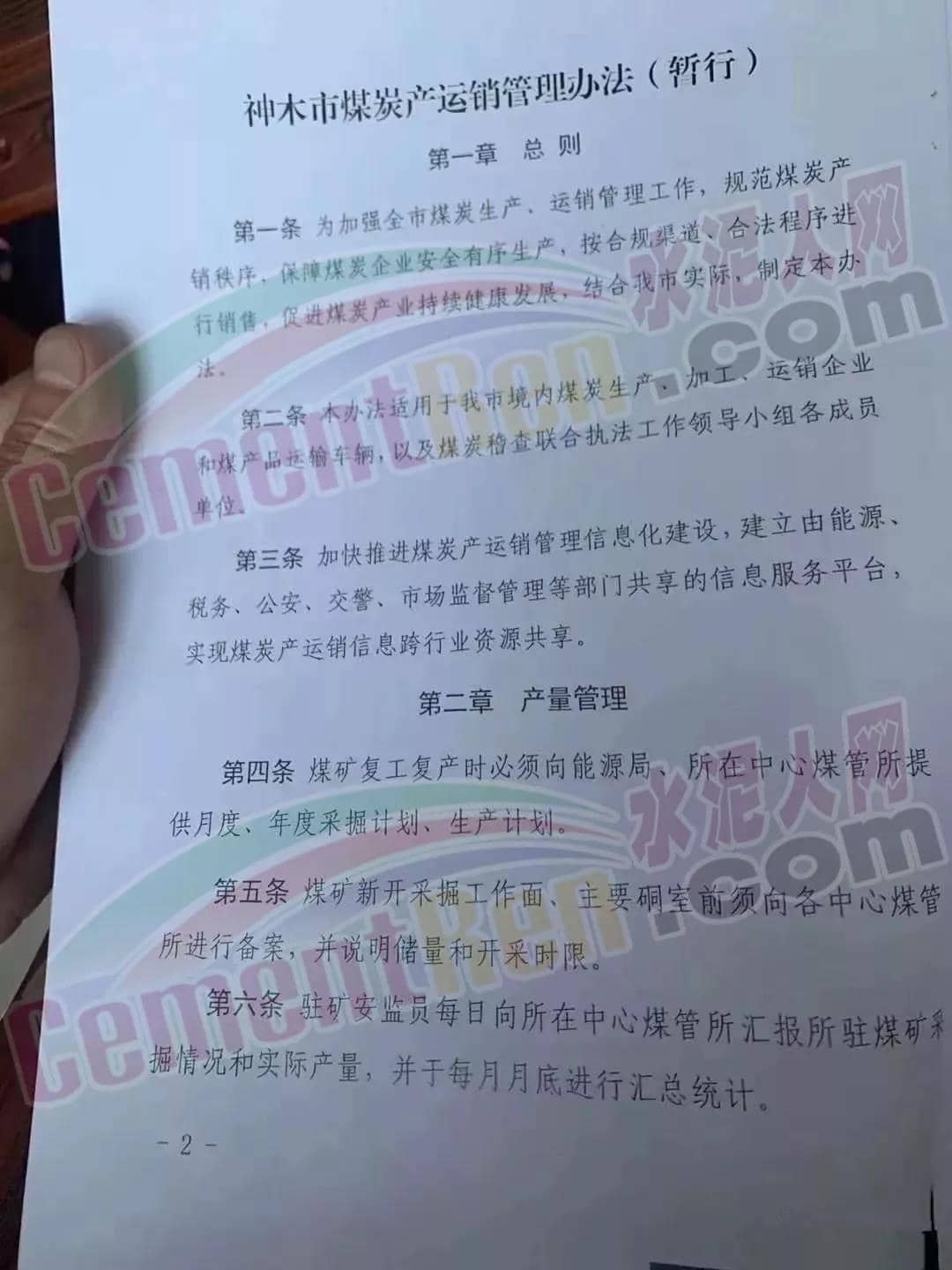 10月8日,神木市煤炭产运销管理办法(暂行)通知称,为加强全市煤炭生产、运销管理工作,规范煤炭产销秩序,视情节停止供票10-20天,并由煤炭稽查联合执法工作领导小组进行全面稽查检查。
