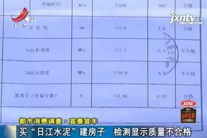 据了解,业主蔡师傅是今年8月份从水泥厂直销处购买的21吨日江牌水泥。出现问题后,他联系了市场监管部门。在厂家、经销商都在场的情况下,由市场监管部门的执法人员抽检了二十袋水泥,送往检测机构进行检测。而根据检测报告,蔡师傅购买的水泥,在3天抗折强度和3天抗压强度这两项均不合格。不仅如此,蔡师傅购买的水泥包装袋上,连生产日期都没有。
