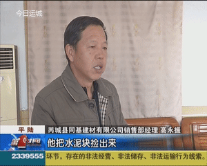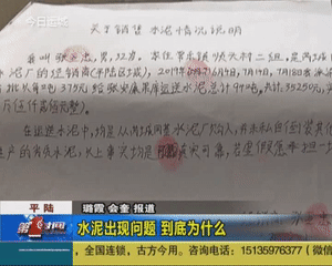芮城县同基建材有限公司销售部经理 高永振:(姜女士家)水泥受潮凝固,凝固以后,他把水泥块解出来,这是主家说的,把剩下的水泥使用了,水泥这个东西特性比较敏感,它一受潮就凝固,强度就下降了;地面起沙那个(张先生)是拉了110多吨,只用了80吨,用量上差别就很多,我怀疑果库这边也存在水泥用量偏少造成的。
