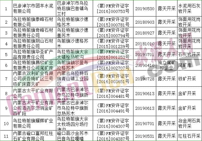 据内蒙古自治区应急管理厅公布消息,根据《中华人民共和国行政许可法》等有关规定,决定依法注销呼和浩特市辰源石料加工有限责任公司等116个非煤矿山安全生产许可证。其中包括水泥行业阿鲁科尔沁山水水泥有限公司石灰岩矿、扎赉特旗山水水泥有限公司水泥用石灰岩矿、准格尔旗铸城水泥有限责任公司石灰岩矿、巴彦淖尔市团羊水泥有限公司水泥用石灰岩矿等多家水泥企业矿山。详情如下: