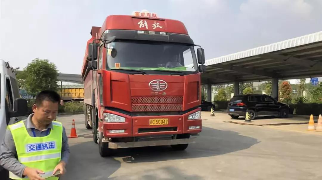 就在周警官押梁某去过磅货车的时候,经过机场高速北往南乾务入口时,也查获了两辆严重超载的大货车。