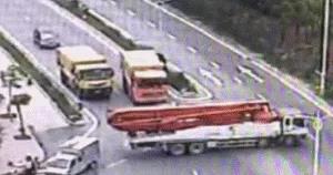 今年4月10日中午12点53分,珠海一司机在南屏南琴路掉头,被两巨无霸猛撞。
