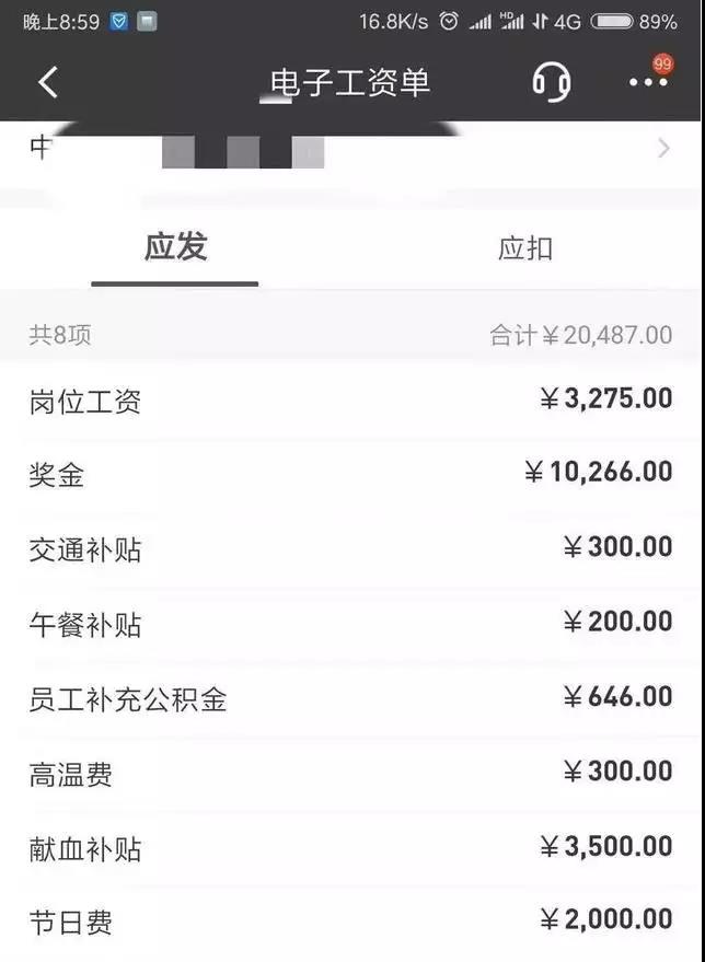 中建八局某公司,我和一个同事的18年工资。