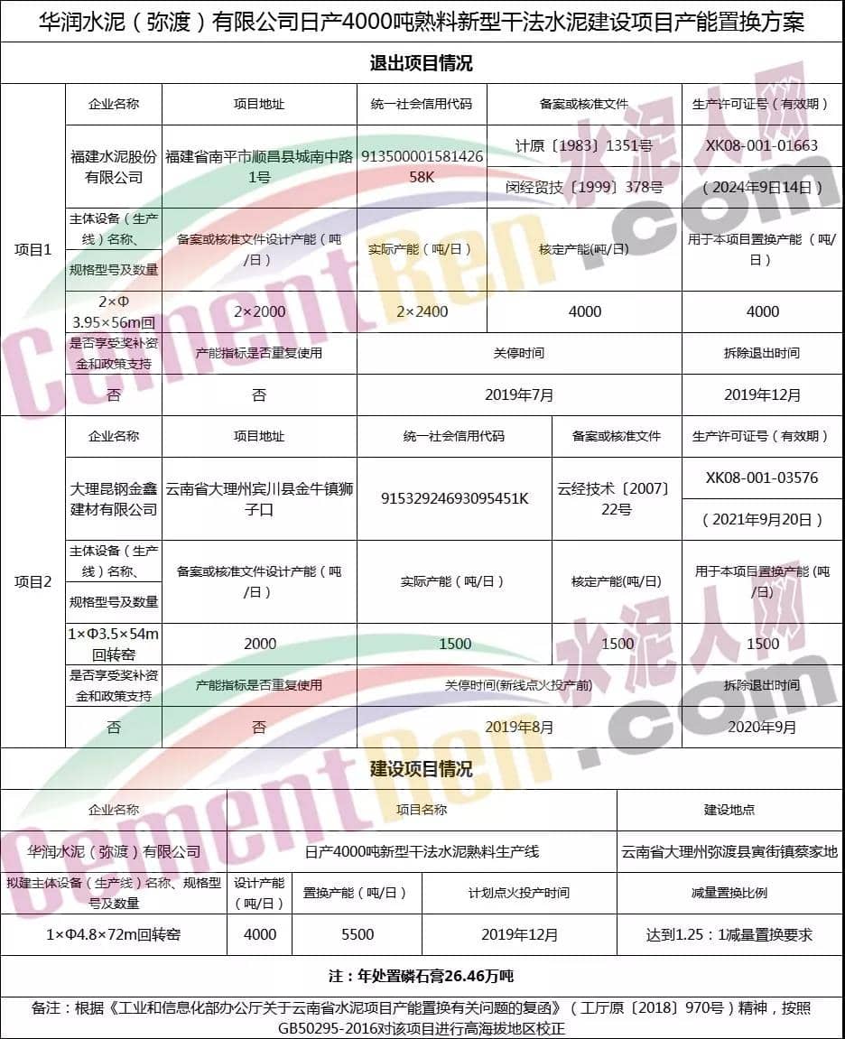 12月25日,云南省工业信息化厅发布了《华润水泥(弥渡)有限公司日产4000吨熟料新型干法水泥建设项目产能置换方案》的公告,原文如下:
