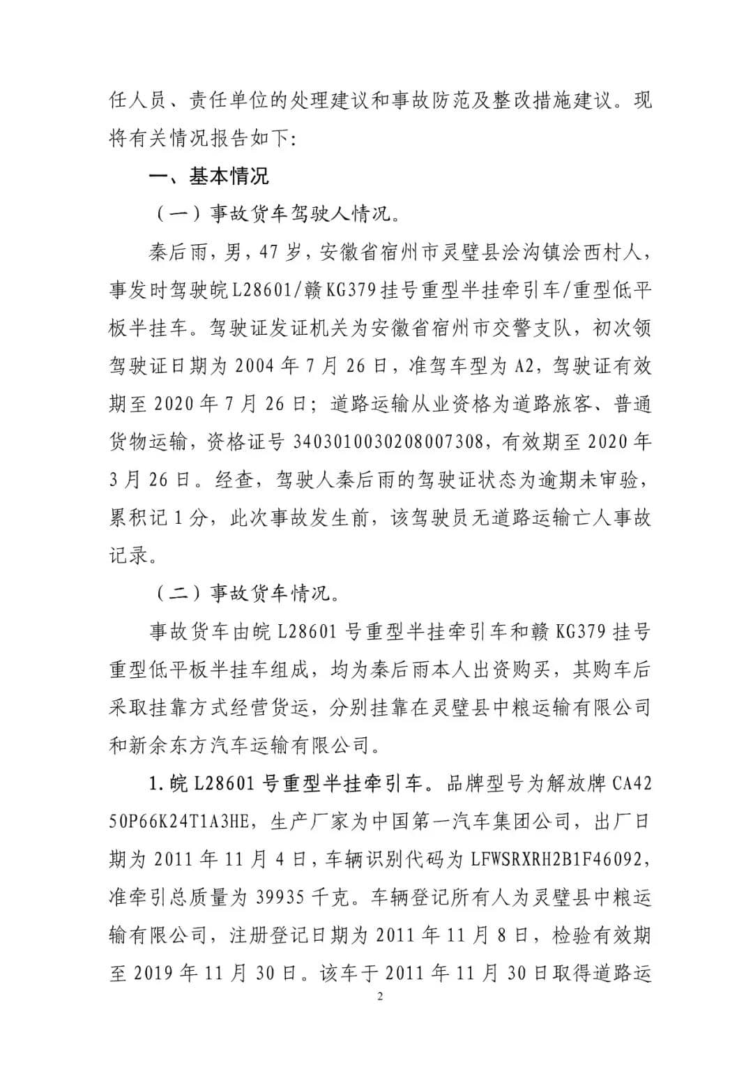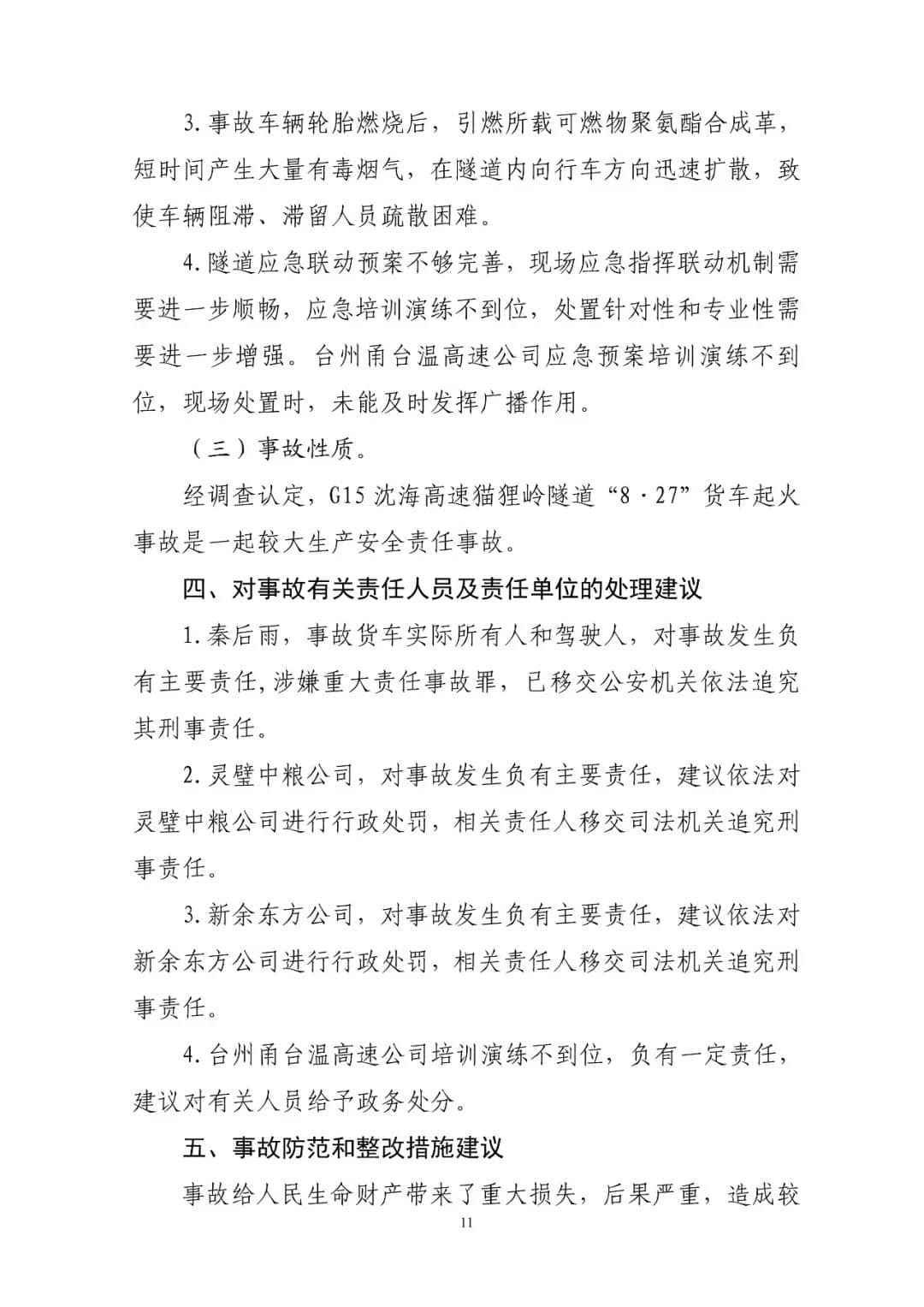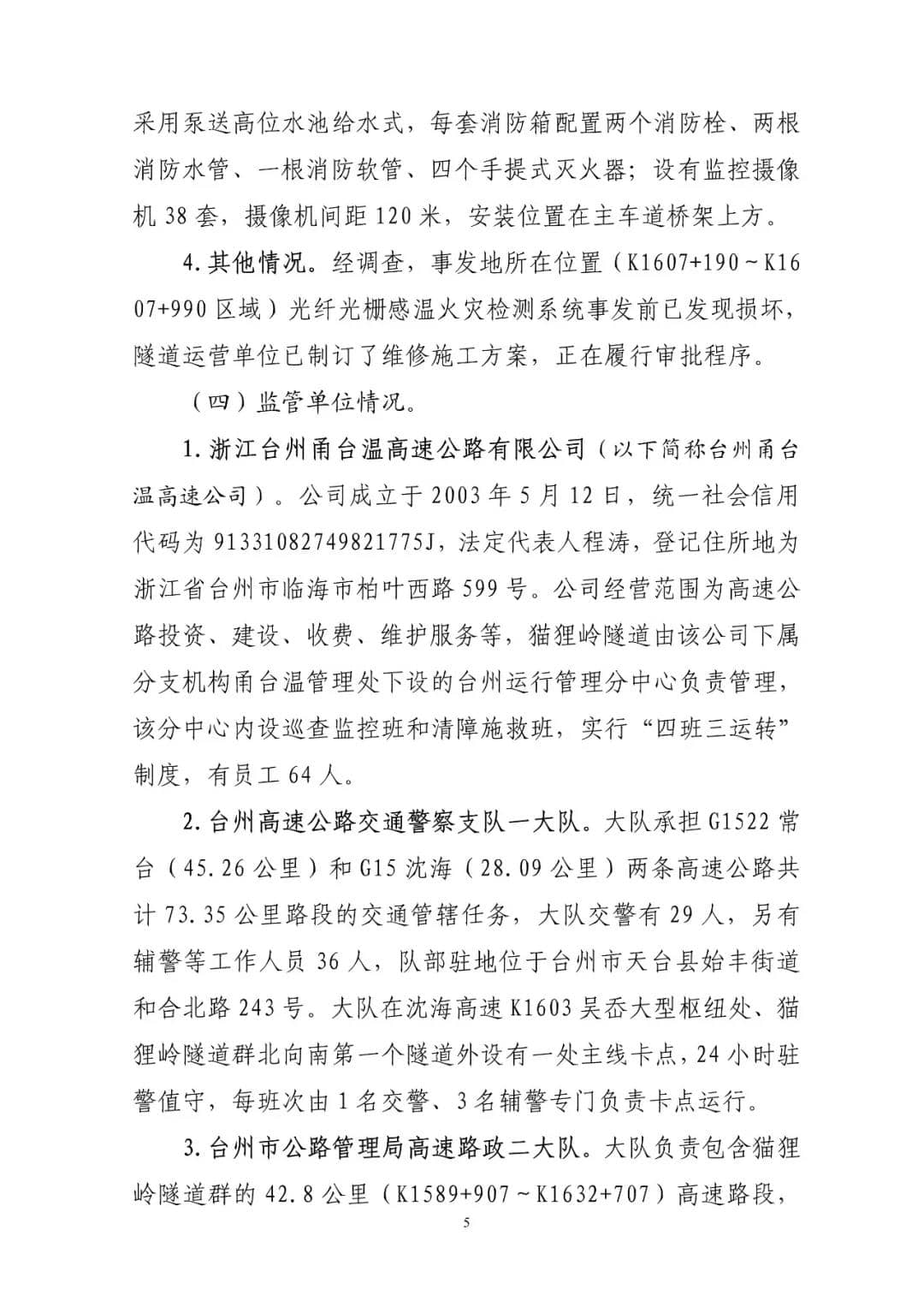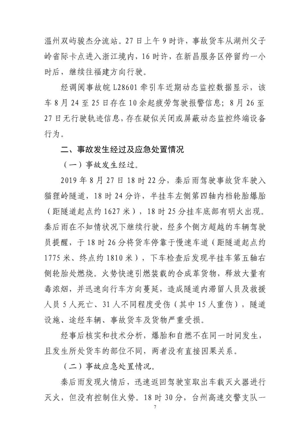 G15沈海高速猫狸岭“8.27”较大货车起火事故调查报告