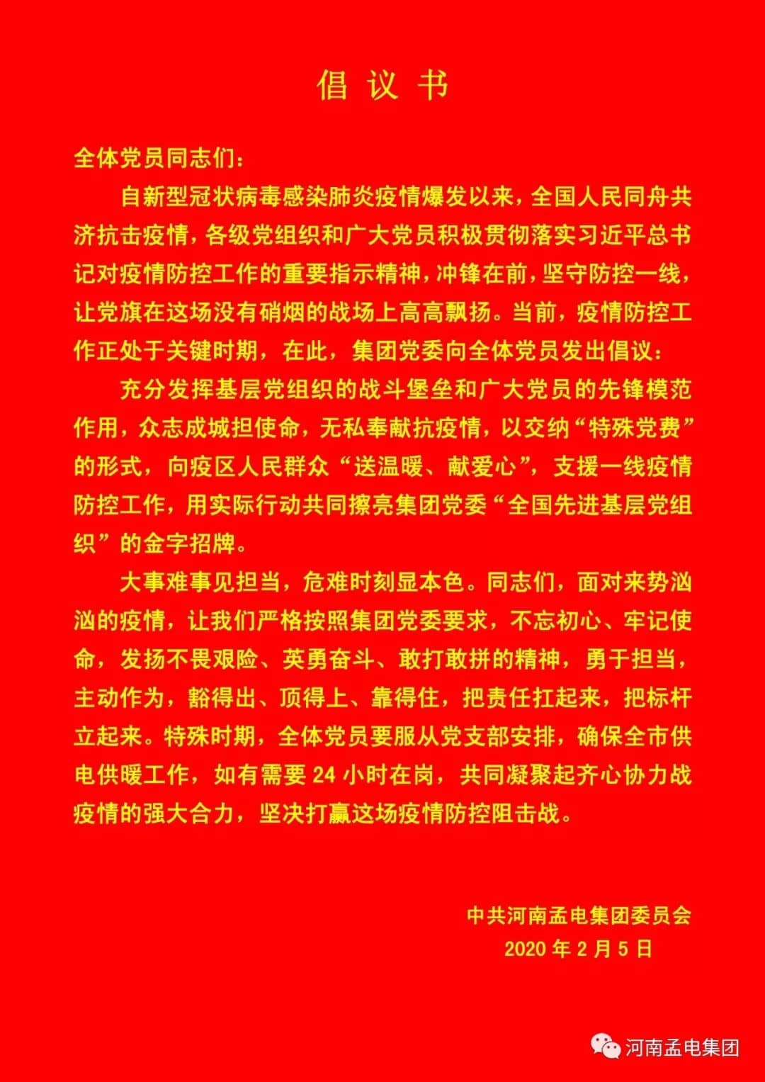 2月5日一早,集团党委向全体党员发出了“同舟共济献爱心,众志成城抗疫情”倡议书,号召党员以交纳党费的形式,支援全市一线疫情防控工作。大事难事见担当,危难时刻显本色,短短两个小时时间,集团208名党员迅速行动,主动交纳党费达20万元,用实际行动体现了共产党员的责任和担当。