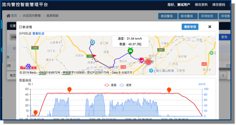 基于以上现实,深圳汉德作为一家专注于车载称重的科技型企业,以重量维度切入物流市场,已有近7年的研发经验,为帮助水泥企业用制度和技术手段做好流向管控,研发了“车载智能称重管理平台”,搭建起一个综合车载智能称重系统和数据分析管理平台的物联网服务平台,帮助水泥企业彻底杜绝“窜货”干扰,减轻销售处工作量,便于财务进行异常运单处理,呈现给管理层一个全面闭环的销售数据,为领导层科学决策提供精确的数据统计以供决策参考。