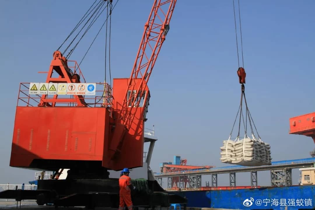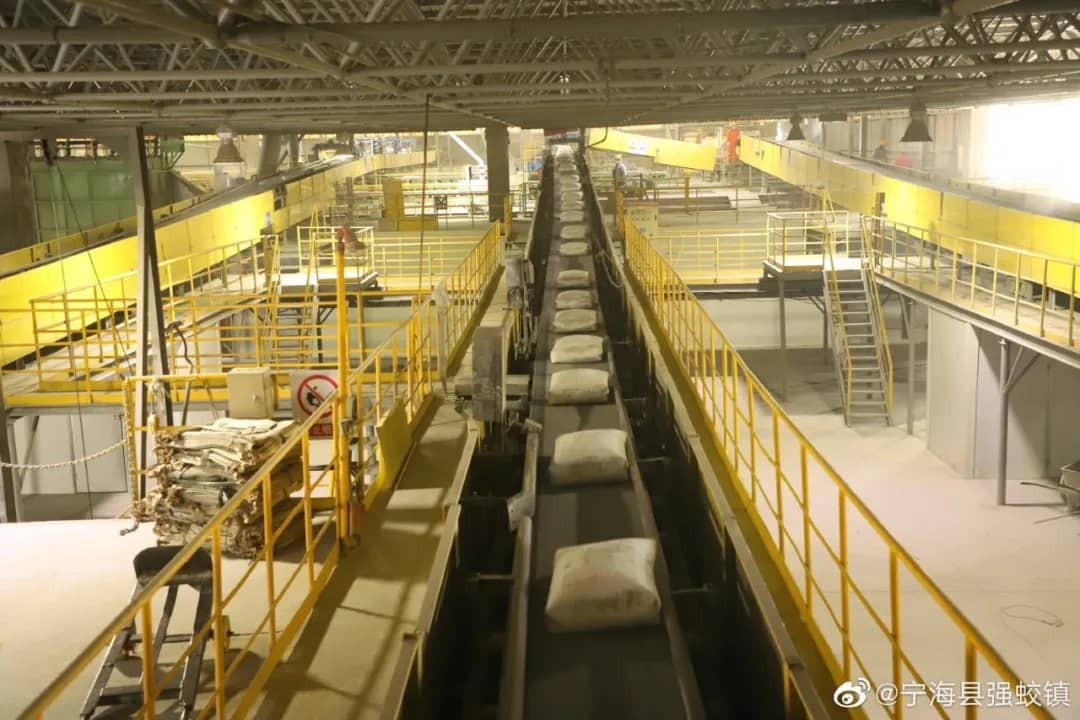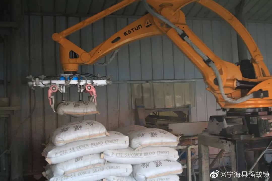 强蛟海螺水泥有限公司“无人化”智能生产线“火力全开”加班加点忙生产,一批机器人自动捆包、自动发货,然后再吊装上船,运往目的地。