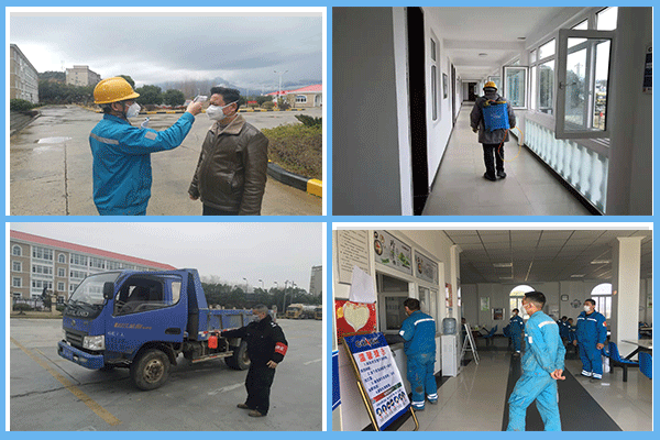 精准施策,做好复工前期准备。疫情发生后,庐山海螺迅速下发加强疫情防控工作的紧急通知,成立以党总支书记为组长的疫情防控领导小组,以党总支纪检委员为组长的纪检监察小组,全面部署疫情防控事宜。及时转发中央、地方和集团各项批示指示要求,落实疫情防治各项决策部署,主动对接地方政府,做好复工复产备案;建立“一人一册一档”登记制,做好公司人员信息排查工作;下发防疫知识手册,通过在厂区、食堂等公共区域制作宣传栏、横幅、标语提示方式,微信、QQ等网络平台及时提醒做好疫病防治要求,加大疫情防护宣传力度;做好人员进出厂体温监测以及人员流动体温检测工作,安排车辆接送人员上下班,严格进出厂人员管理;做好办公区域、食堂、宿舍、班组活动室等人员密集区域定期消毒,加强重点部位防控力度,同时,做好员工分散就餐管理,统一由食堂工作人员进行配餐,减少人员接触点,确保公司全面顺利复工复产。截止目前,庐山海螺无疑似、确诊病例。