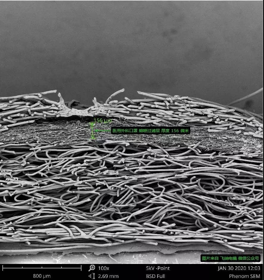 医用外科口罩截面图,飞纳台式扫描电镜拍摄
