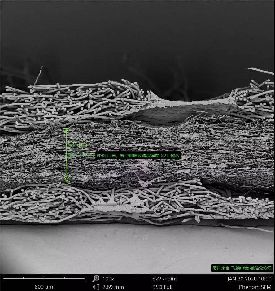 N95 口罩截面图,飞纳台式扫描电镜拍摄