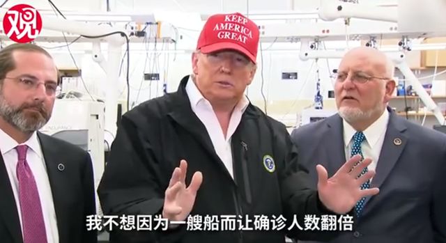 特朗普6日在亚特兰大视察疾病控制与预防中心时表示:“我更倾向于让他们(邮轮乘客)留在船上,但是我也理解其他人想要让他们下船,到陆地进行隔离。”