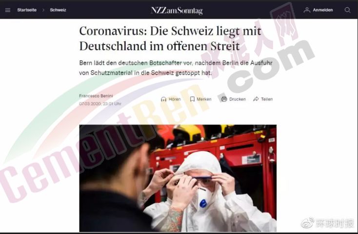 由于防疫物资紧张,海外版“拦截口罩”剧情上演。据《新苏黎世报》等媒体3月7日报道,近日,因为德国限制口罩及其他防疫物资出口,德国海关上周拦截了24万只瑞士进口的防护口罩,导致同样急需物资抗击疫情的瑞士大为不满。数据显示,瑞士国内目前已确诊超200例新冠肺炎病例,国内医疗物资告急。