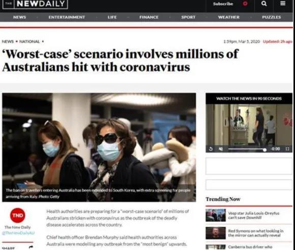 澳大利亚首席医疗官布伦丹墨菲此前表示,目前正研究疫情从“最良性”状态转变到病毒在几周内感染数百万人的可能情况。澳大利亚正在为“最坏情况”做打算。