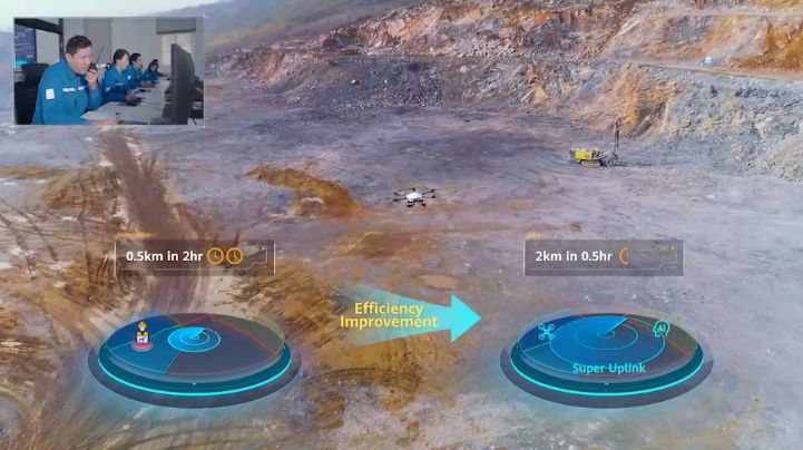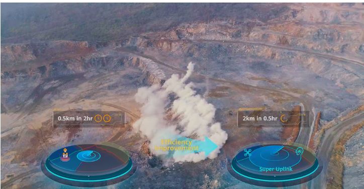 以矿区爆破预警应用为例,“超级上行”可实现无人机4K高清视频实时回传,结合AI保障实时视频清晰度和精准识别,提升爆破警戒覆盖范围从原先500米扩大到2公里,原有2小时人力检查工作量,降低为半小时,生产效率大幅提升,并同步提高了爆破的安全性。