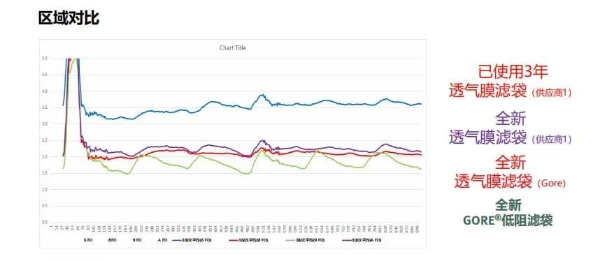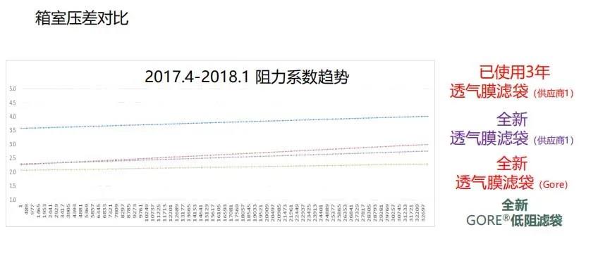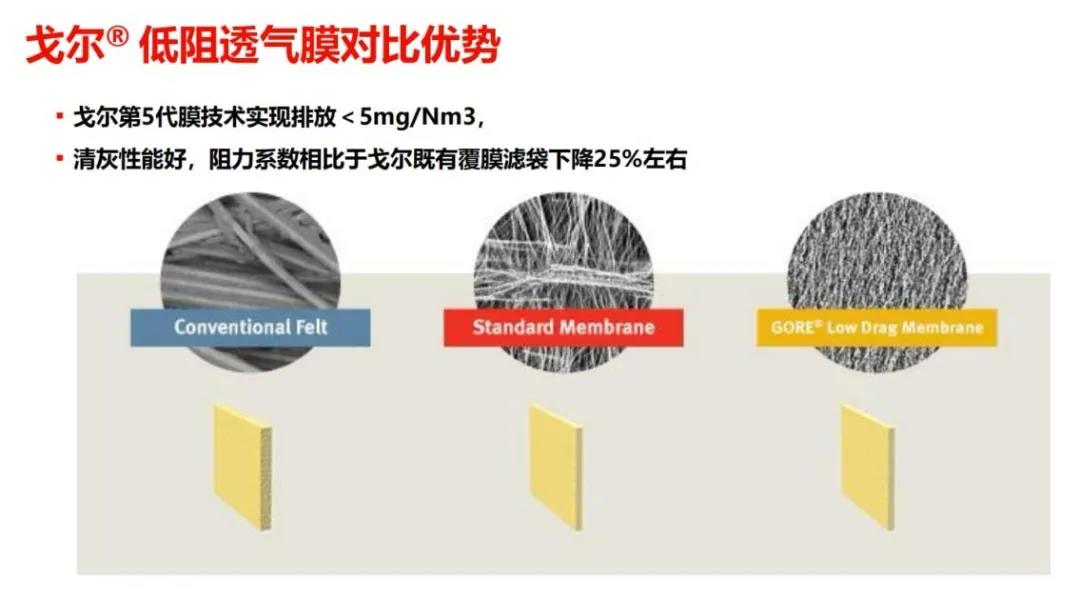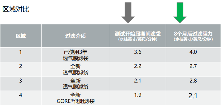GORE®低阻透气膜运行阻力系数更低,可以有效提高风量并降低风机能耗。关键在于提高了清灰能力,而且不会牺牲使用寿命或颗粒物捕集能力。