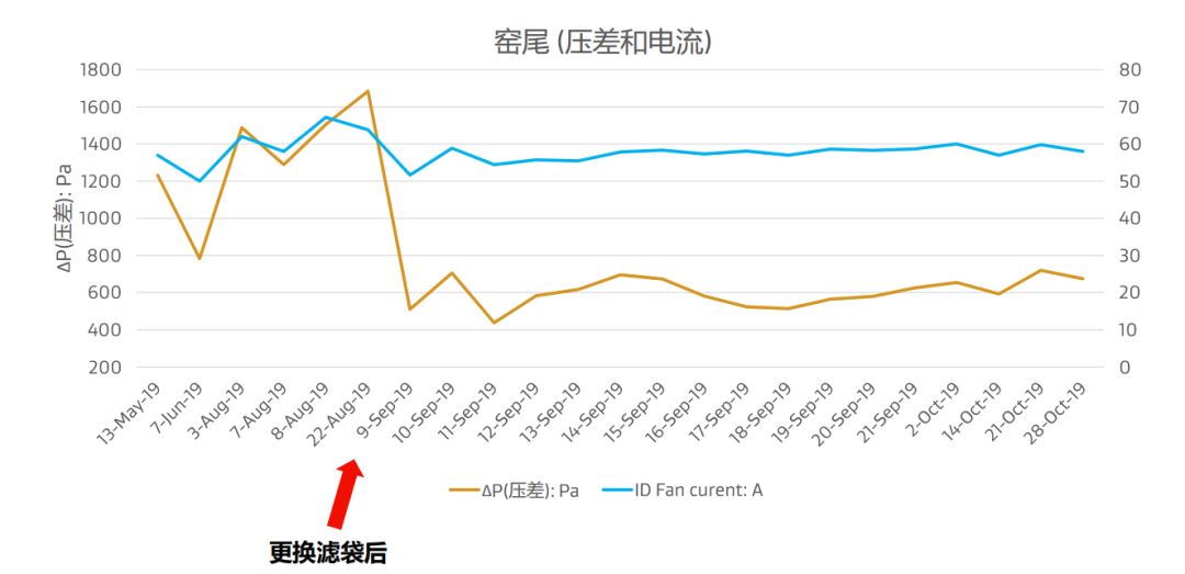 压差——2# 窑尾 (2019年8月运行) 窑喂料量提高 16%