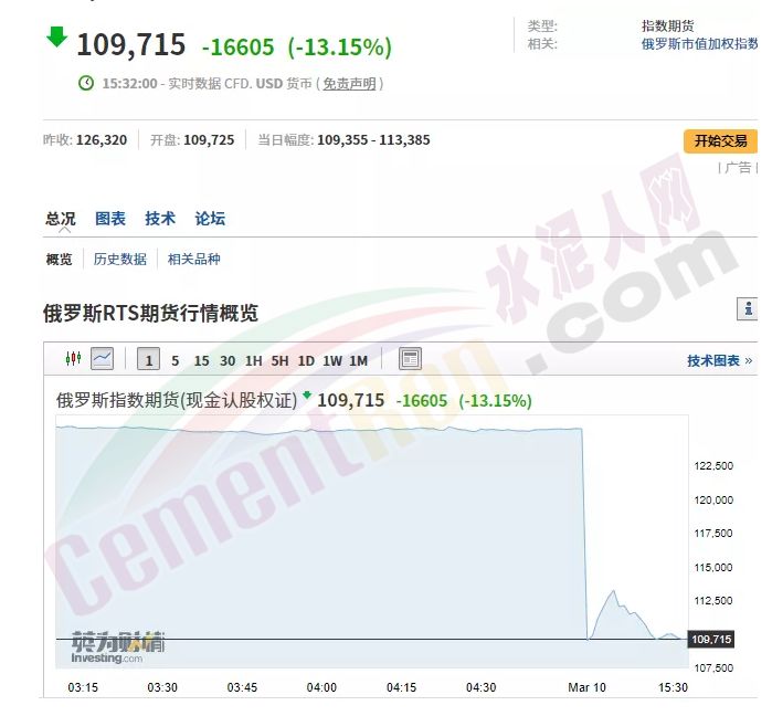 而就在疫情不断蔓延的背景下,俄罗斯股市开盘,股指RTS指数开盘后盘中暴跌超10%。