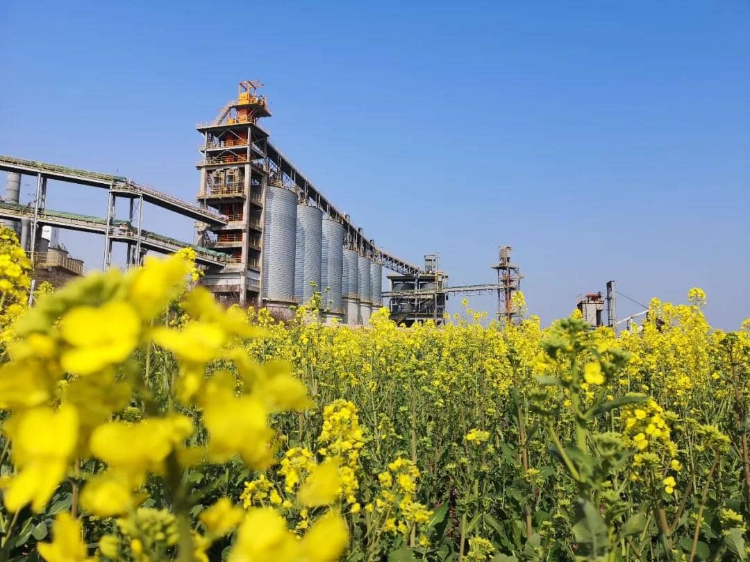 ▲绿林满园长江滨,鸟鸣鹊归栖枝茎;共抗疫情克时艰,瑞色含春焕新颜——瑞泰马钢
