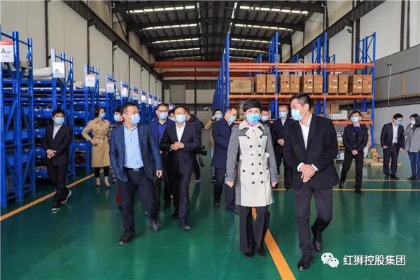 陈玲玲副书记一行参观供应链中心仓、中心控制室,听取章小华董事长关于集团及供应链仓储经营发展、疫情防控、复工复产进展等情况,对红狮集团疫情防控、生产经营取得成绩给予充分肯定。