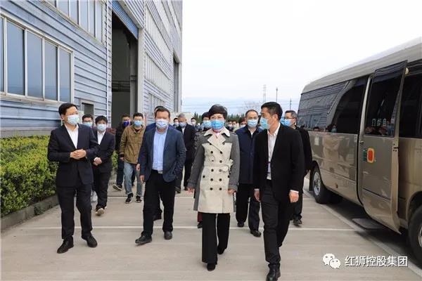 同日,下午,金华市委副书记、政法委书记陈玲玲到红狮供应链开展“三服务”活动,现场指导疫情防控和复工复产。