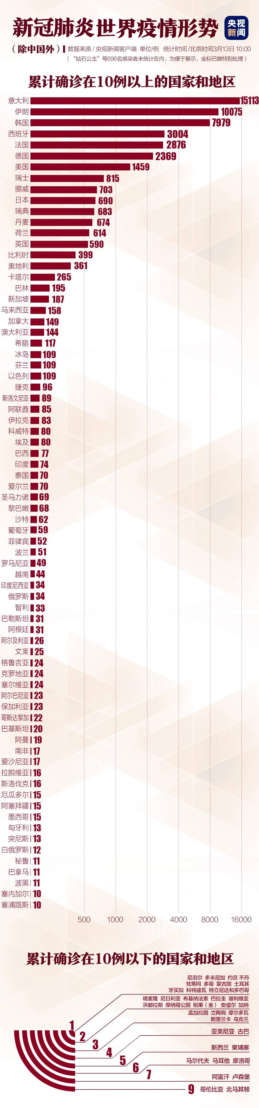 截至欧洲中部时间3月12日上午10时,中国境外共117个国家/领地/地区确诊新冠肺炎44067例(新增6703例),死亡共计1440例(新增310例),新增4个国家/领地/地区(法属波利尼西亚、土耳其、洪都拉斯、科特迪瓦)向世卫组织上报新冠肺炎病例。